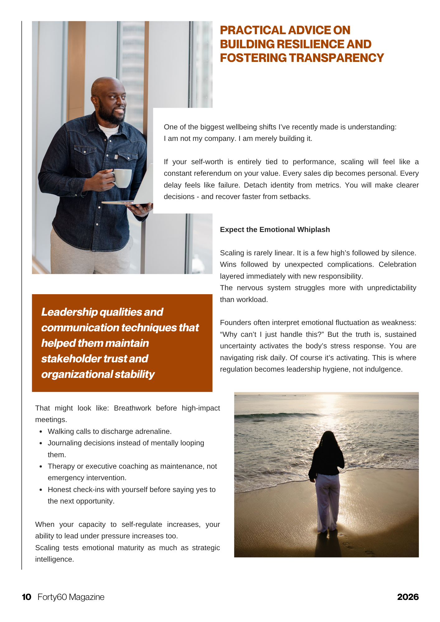 “If your self-worth is entirely tied to performance, scaling will feel like a constant referendum on your value. Every sales dip becomes personal. Every delay feels like failure. Detach identity from metrics. You will make clearer decisions - and recover faster from setbacks.”